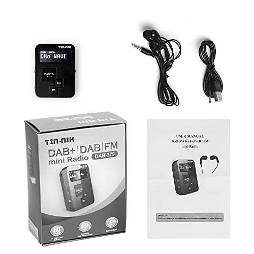 Tin-Nik DAB-379 - Radio DAB digitale portatile, DAB+/ DAB/FM Mini Radio - Pocket DAB Radio per sport passeggiate, corsa o ciclismo, batteria ricaricabile, auricolari stereo inclusi