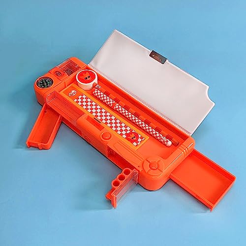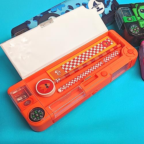 Tinc Astuccio scolastico scomparto estraibile - Arancia, include matita con parte superiore in gomma, penna a sfera e righello da 15 cm - Scomparti segreti con pulsante, taglia unica (SNPCOJAY)