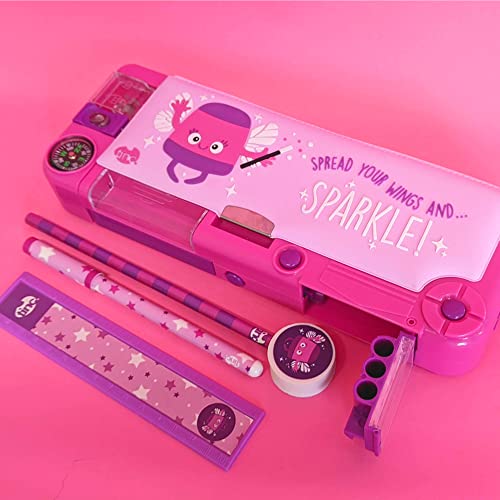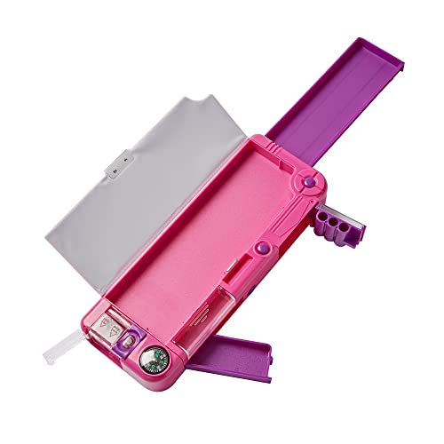 Tinc Astuccio per la scuola con scomparto a scomparsa Viola, include matita con parte superiore in gomma, penna a sfera e righello da 15 cm - Scomparti segreti con pulsante, taglia unica (SNPCOOLO)