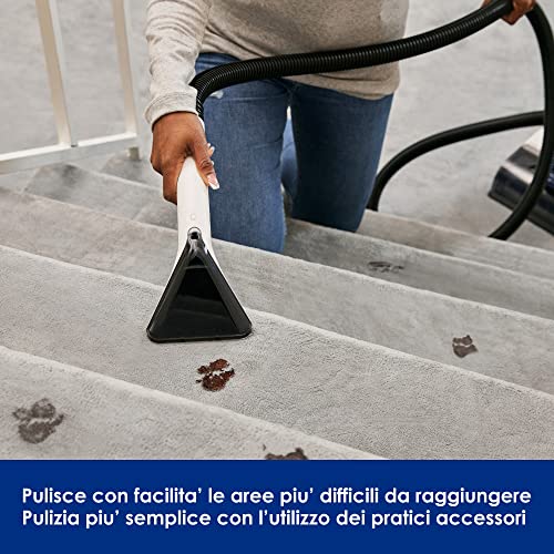 PULISCE PIÙ A FONDO CON IL RIMUOVI MACCHIE- Con un tubo flessibile aggiuntivo e un pratico strumento per rimuovere le macchie è possibile pulire tappezzeria, scale con moquette e altre aree difficili da raggiungere - e anche rimuovere facilmente le macchie piu' ostinate.