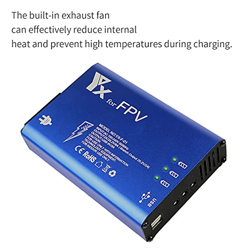 Supporta 3 batterie FPV, smartphone e ricarica simultanea del telecomando. Chip di protezione della ricarica intelligente integrato, protegge efficacemente la sicurezza della batteria durante il processo di ricarica.