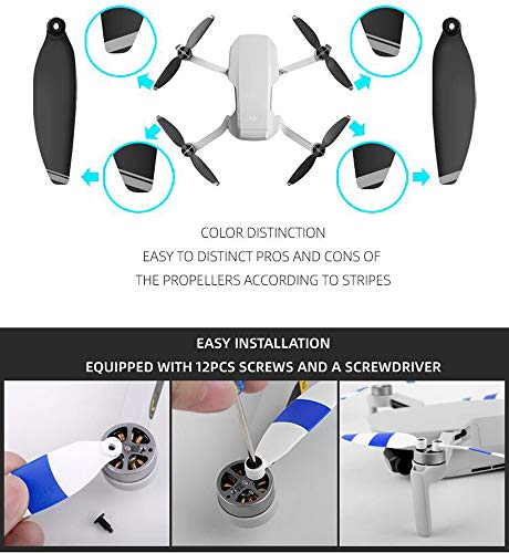 Facile da installare. Fornito con viti da 12 pezzi e un cacciavite. Contenuto della confezione: 1 * Set elica per Mavic Mini. [Il drone solo per la visualizzazione, non incluso nella confezione]