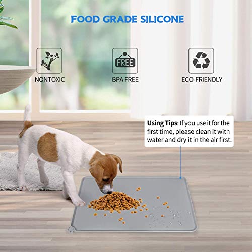 Dimensioni: 48,5 x 30 cm, che può fornire un ampio spazio per mangiare i vostri animali domestici, e fare spazio per le ciotole di cibo e acqua, senza affollare il tappetino.