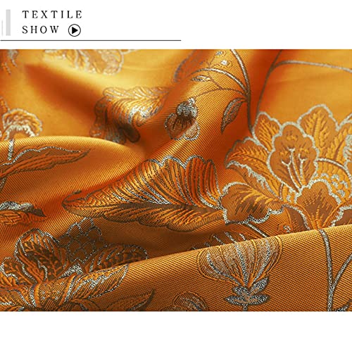 TINGCHAO Tessuto in Raso di Seta Broccato Squisito Delicato Jacquard Intrecciato Micro Convesso Dorato Bellissimi Gigli Eleganti Motivo Floreale per Abiti da Donna 145X100cm,Orange Yellow