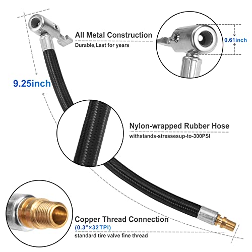 TINGJS Tubo Gonfiaggio Pneumatici Auto Adattatore Pompa Gonfiatore per Gonfiaggio per Pneumatici Bicicletta Motociclo 23,5 cm 300 PSI 2 Pezzi