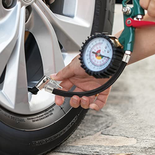 Materiale durevole: I tubi per pneumatici per auto sono realizzati in metallo di alta qualità e tubo dell'aria intrecciato resistente all'alta pressione, in grado di resistere a sollecitazioni fino a 300 PSI, è resistente e non facile da rompere.