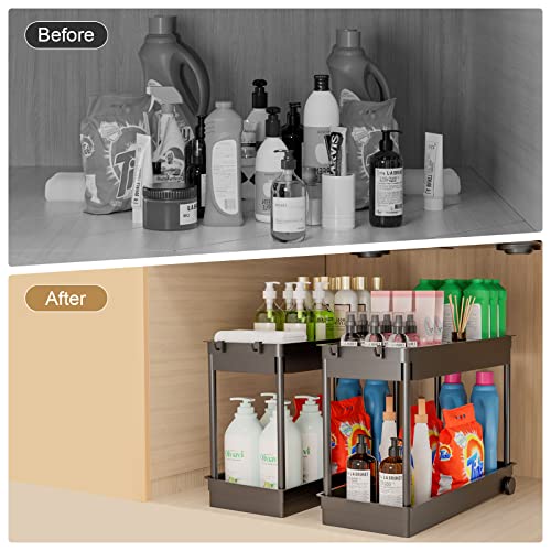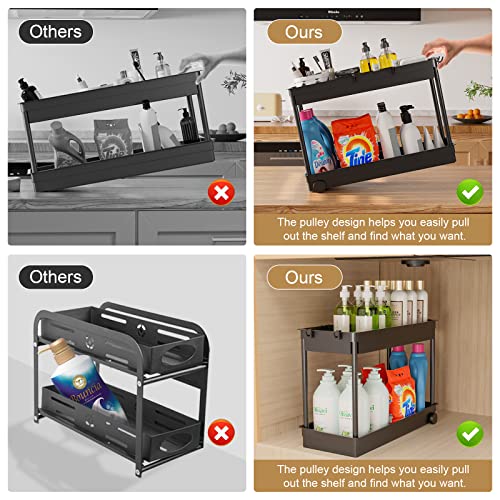 TINIFO Organizer Sottolavello Cucina, 2 Livelli Organizer Lavello con 4 Ganci, Sottolavello per Cucina Bagno (Nero)