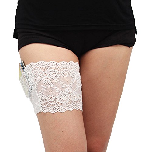 TININNA Moda Pizzo Elastico Calzino del merletto Leg Imposta Elastiche Evitano lo sfregamento Fascia coscia Scaldamuscoli per donne(Bianco,M)
