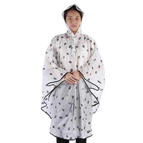 TININNA Moda Unisex Portatile Riutilizzabile EVA Traslucido Impermeabile Poncho con Cappuccio Coprizaino Poncho Rainwear per Outdoor Viaggio Campeggio(Bianco+Nero)