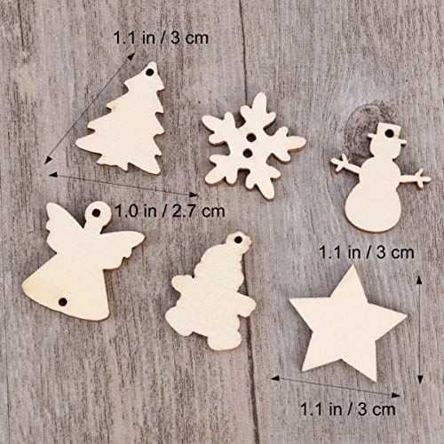 TINKSKY - 50 alberi di Natale in legno o pupazzi di neve o fiocchi di neve intagliati non dipinti, 12 modelli assortiti, ornamento da appendere, bricolage per le decorazioni di Natale