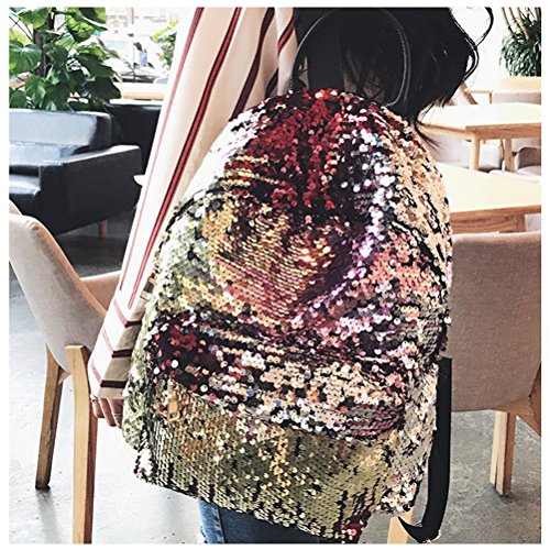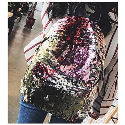 Tinksky Bling Sequins Paillette Zaino Casual Outdoor Sport Escursioni Daypacks Regalo di compleanno di Natale per le donne Girls (Golden)