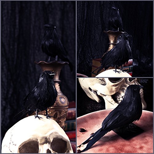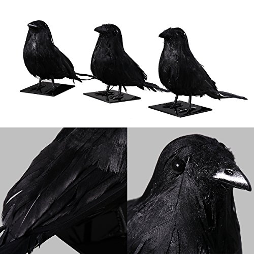 Tinksky, corvi di piume nere artificiali, corvo, uccelli corvi con piedistalli, decorazione per Halloween, confezione da 3