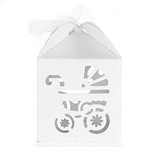 Tinksky Favore dei regali scatole Bomboniera Scatole di caramelle dono con nastri confezione da 50 (bianco)