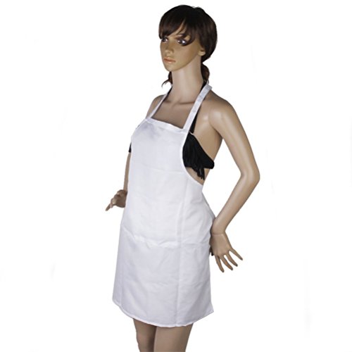 Tinksky - Grembiule da cucina a collo alto, senza maniche, con tasca, colore: Bianco