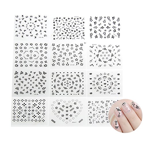 Tinksky 50 Sheets of Mixed-color 3D Design Self-adhesive Tip Nail Art Stickers Decals Nail Tips Decorations (Random Color Pattern)