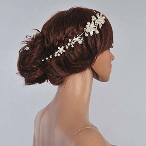 Tinksky - Tiara per capelli da sposa, con cristalli lucenti e fiori di perle bianche