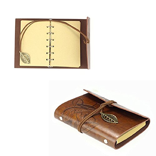 Tinksky Vintage Style Leaf Leaves Pattern PU Cover Blank Notebook Travel Journal Diary Jotter-Size S (Brown)