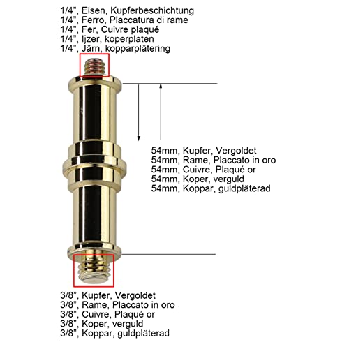 TINKTEEK Spigot in Rame placcato in oro Doppio Attacco Maschio con Filettature 1/4"-3/8" 1 Confezione da 5 Pezzi
