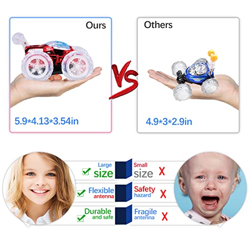✅Dimensioni ridotte: dimensioni auto acrobatica RC: 15 * 10,5 * 9 cm, dimensioni telecomando: 7,5 * 7 * 2,5 cm, piccola e carina, perfetta per i bambini.