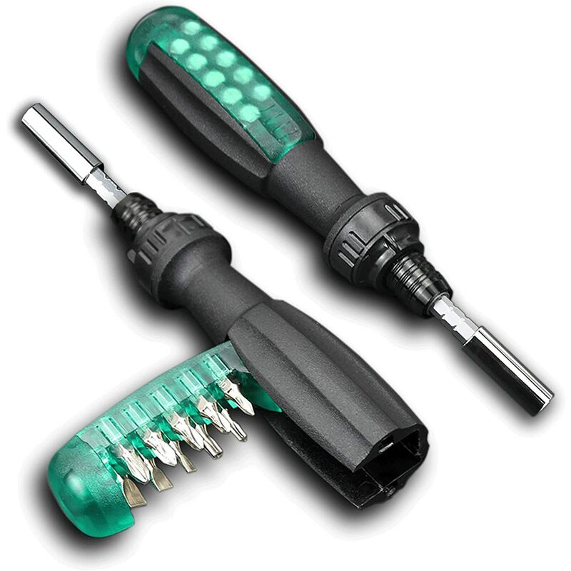Design a cricchetto: regolazione positiva e negativa, può montare e smontare rapidamente viti rotanti positive e negative, ideale per fissare viti in spazi ristretti 【Miglioramento dell'efficienza del 200%.】Tecnologia Dual Drive con cricchetto ad alta coppia, 2 volte più veloce degli avvitatori standard. Questo design può migliorare l'efficienza del tuo lavoro e ridurne il lavoro 10 bit immagazzinati nell'impugnatura: è un mini set di cacciaviti tascabili. Viene fornito con 10 punte esagonali da 45 dimensioni standard in acciaio C6 (6,35 mm), elevata durezza, coppia elevata, resistenza all'usura e durata Comodo e facile: rinforzo esagonale, biella rinforzata, non facile da scivolare. Con magnete, nessuna caduta, durevole. Impugnatura morbida, facile da usare, risparmio di manodopera e lavoro rilassato Buona scelta per i mancini: può essere commutata tra rotazione destrorsa, mancina e fissa. Chiusura e sbloccaggio rapidi, non importa con la mano destra o sinistra