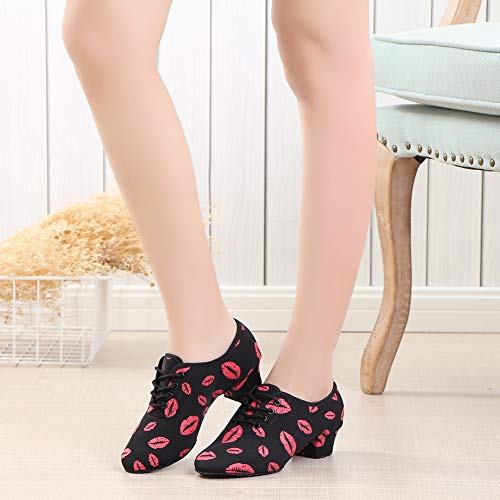 TINRYMX Scarpe da Ballo per Ragazzo e Uomo con Lacci - Tacco Basso in Tessuto Oxford Rosso Scarpe da Ballo per Adulti per Bambini per la Pratica del Ballo Latino,29 EU