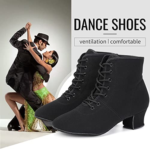 TINRYMX Stivali da Ballo Latino da Donna Allacciare Punta Chiusa Standard Sala da Ballo Tango Practice Sera Festa Scarpe da Ballo,Modello-LHD-GBNJB,Nero-5CM,40 EU