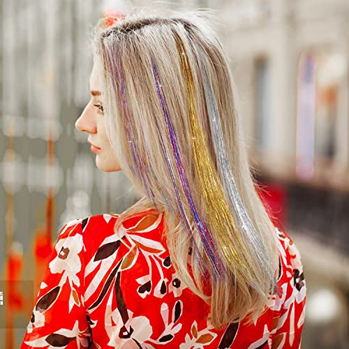 ❦【Occasioni Applicabili】Con queste extension per capelli, non è necessario tingere i capelli. l'orpello per capelli con ciocche scintillanti e lucenti è buono per feste di compleanno, bellezza quotidiana dei capelli, Halloween, feste a tema, festival musicali, decorazioni natalizie, ecc.
