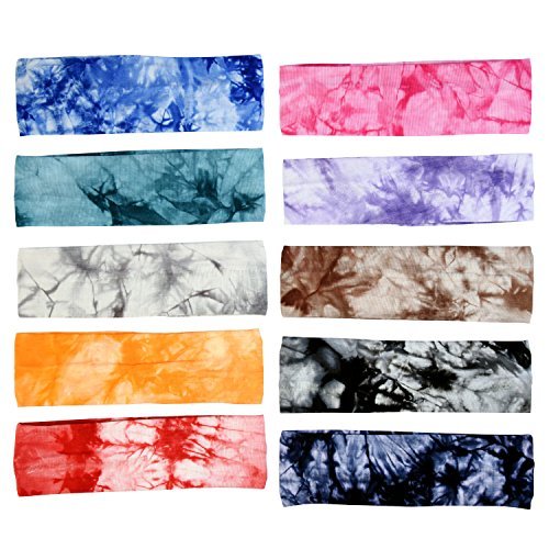 Tinto Annodato Fasce di Cotone Elastico per Capelli Fasce Yoga per Giovane Ragazze Donne Adulti, Colori Assortiti, 10 Pezzi