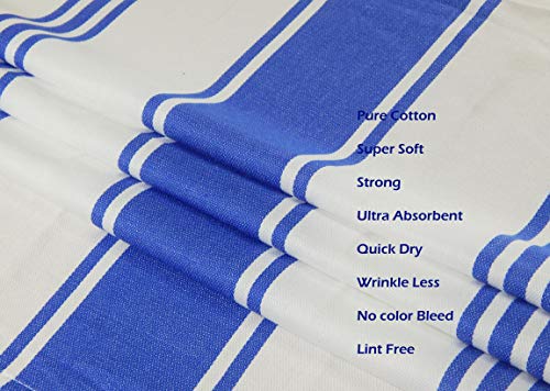 Confezione di 6 strofinacci da cucina a righe vintage blu, ciascuno ha una dimensione perfetta, 50 x 70 cm, ideali per case e ristoranti.