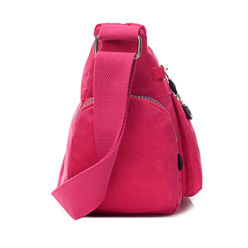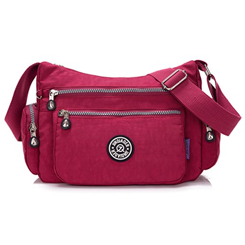 Tiny Chou - Borsa messenger a tracolla, in nylon leggero e impermeabile, con numerose tasche e cerniere, rosso (Red), S