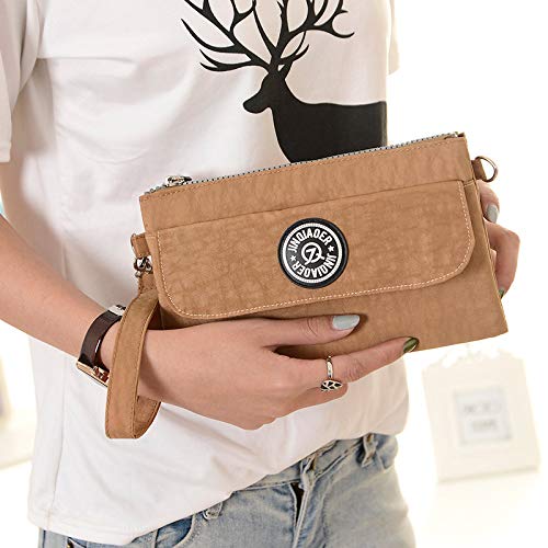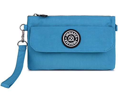 Tre scomparti con zip design che può contenere telefono cellulare, carte di credito, piccoli cosmetici, monete e così via;