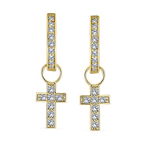 Tiny Cross Communion Kpop Huggie Dangle Cz Orecchini A Cerchio Pave Cubic Zirconia Removable Interchangeable Charms 2 In 1 Earring Set Placcato Oro