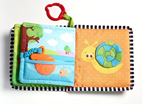 Racconta al tuo bambino la storia dei simpatici animaletti che popolano il libretto, e aiutalo a coprire i giochini e le attività che sono custodite in ogni pagina: lo specchio sull'albero, il sonaglio nella lumachina, il massaggiagengive