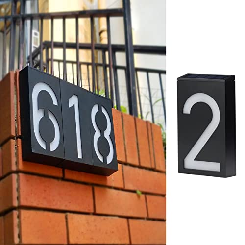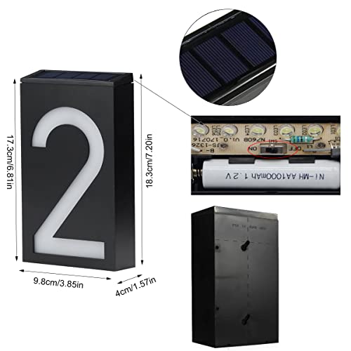 TINYOUTH Numero civico solare - Numero 2, targa per porta da parete, 6 LED per numeri civici con luci, impermeabile IP55, per ricerca casa fai da te