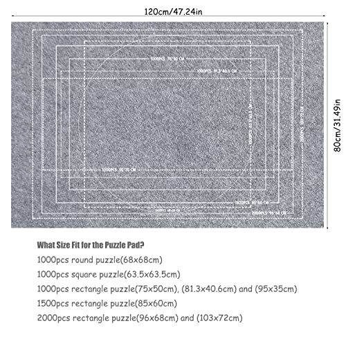 Capacità del tappetino per puzzle: il tappetino per puzzle misura 120 x 80 cm, il tappetino in feltro può contenere puzzle da 500 a 2000 pezzi, adatto per puzzle rotondi, puzzle quadrati e puzzle rettangolare.