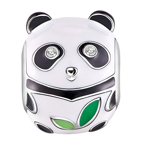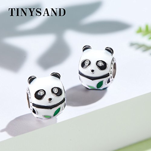 TINYSAND Charms Bead Panda Volpe Gatto in Argento Sterling 925 + Zirconi Cubici, Animali Charms per Europeo Bracciale