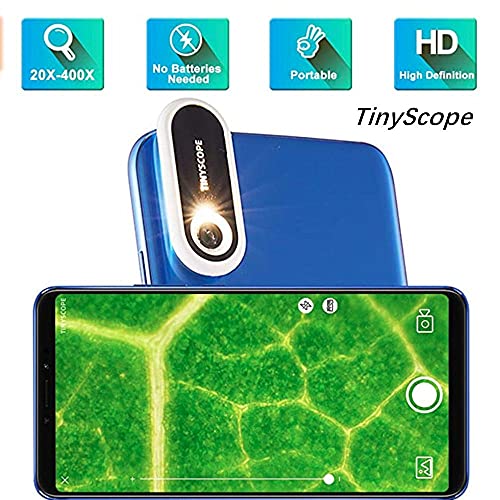 TINYSCOPE 20X-400X Ingrandimento Microscopio per cellulare Microscopio portatile Lente d'ingrandimento con 12 mini adesivi antitraccia per fibre di carta, gocce d'acqua, foglie di canfora, stoffa,