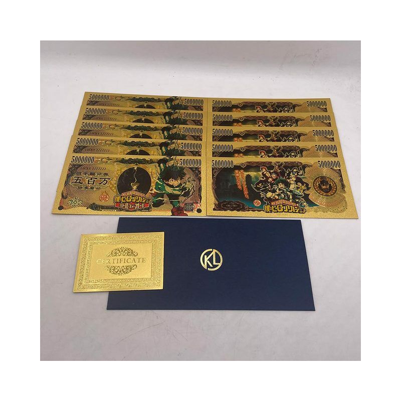6 tipi Anime giapponesi My Hero Academia Cards School mange banconota in plastica dorata regali per cartoni animati per la decorazione della collezione,1-10pcs