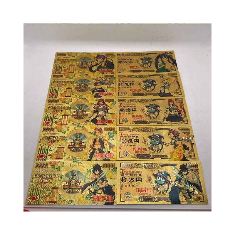 10 tipi di Design giappone Anime Fairy-Tail banconote cartone animato in carta placcata oro 24 carati per la raccolta,Oro