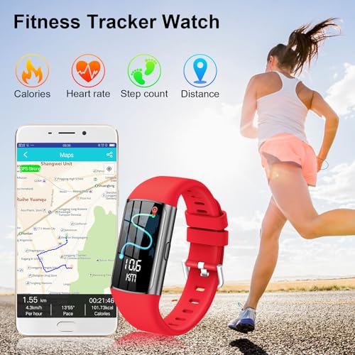 【 Tutto il giorno Attività di monitoraggio e GPS collegare 】: Tutto il fitness tracker segue automaticamente le vostre attività sportive, contando le calorie, contapassi, distanza a piedi anche calcolare le calorie bruciate. Puoi aprire il fitness tracker modalità "movimento GPS" per visualizzare il percorso in esecuzione nella App Qwatch Pro.