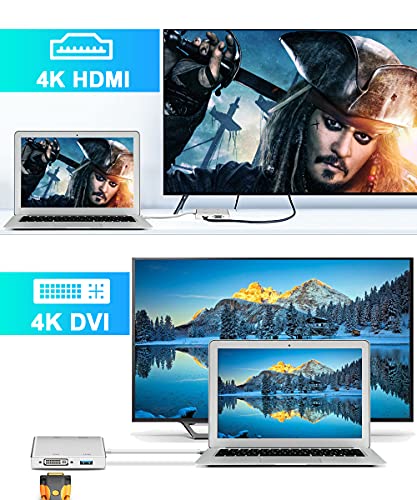 Tipo C a HDMI, Ibacakys USB-C (tipo C) a HDMI DVI VGA USB 3.0 Hub USB Multiport adattatore per MacBook/MacBook Pro/Chromebook Pixel/Samsung Galaxy S8/S8 Plus a HDTV/monitor/proiettore, argento USB C 4 in 1