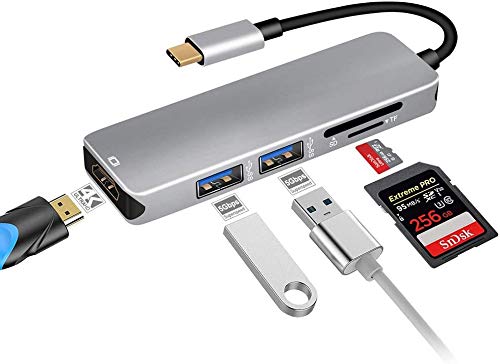 [Hub multifunzione 5-in-1 maggiore efficienza d'ufficio] compatibile con MacBook Pro, laptop Type-C e dispositivi USB-C, lettore di schede SD/TF, 2 USB 3. 0 trasferimento ad alta velocità, USB a 4K HDMI. Basta semplicemente portare questo hub di tipo C con voi invece di altri cavi extra disordinati.
