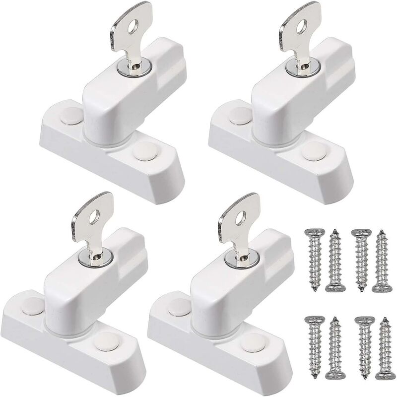 Antifurto e sicurezzaL'angolo di blocco è liscio, non fa male alla mano. Design di rinforzo della fibbia di bloccaggio, non facile da staccare, resistente. Imbottitura anticollisione nella parte inferiore della maniglia per evitare di graffiare il telaio della finestra. È adatto a tutte le finestre e porte.Design di rotazione di 180 gradi facile da usare, può essere ancorato a qualsiasi angolazione.Ruotare semplicemente il braccio di interferenza per bloccare o aprire l'anta.Puoi anche bloccare la maniglia in posizione con la chiave in dotazione. Alta qualità Realizzato in zinco pressofuso di alta qualità;