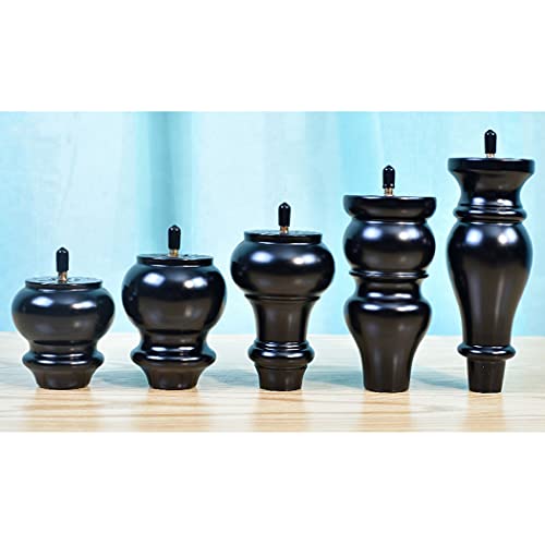 Tipo Zucca Piedini per Mobili in Legno Gambe per Mobili Cabinet Piedi del Divano Tavolo Letto Armadio Armadietto Guardaroba M10 Bullone,Nero 4 Pezzi (15cm)