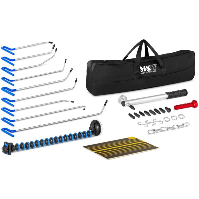 Kit tirabolli auto di marca MSW ✅ Modello: MSW-DENTPULLER.SET7 ✅ Articolo: 10060791 ⬇️ Caratteristiche principali Set da 21 pezzi per rimuovere ammaccature senza danneggiare la vernice Pannelli riflettenti per riconoscere le ammaccature Metodo per sollevare le ammaccature senza danneggiare la vernice e che supporta la valorizzazione dell'auto Riparazione veloce ed economica della carrozzeria Utilizzo semplice grazie alle istruzioni d'uso ⬇️ Dettagli tecnici Manuale Sì ⬇️ Descrizione del prodotto Eliminare le ammaccature e preservare la vernice? Per questo c'è il kit tirabolli per auto di MSW! Anche le ammaccature più piccole possono essere rimosse con questo attrezzo che permette di ridurre i costi, risparmiare tempo ed evitare faticosi lavori di verniciatura su grandi superfici della carrozzeria di auto, camion o moto. La facilità d'uso permette il suo utilizzo sia in officine che da parte di inesperti. Il set per la rimozione delle ammaccature è costituito da 10 leve di