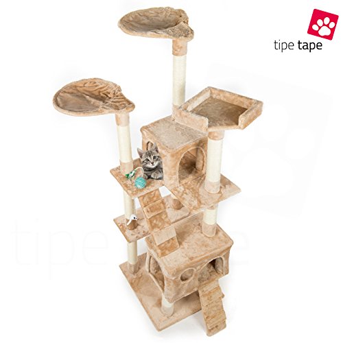 Caratteristiche: 1 piattaforma per riposarsi e osservare 2 conche orientabili per riposare 2 comode casette a disposizione del vostro gatto Diversi piani per saltare e fare movimento 1 cordicella con topolino a per giocare 2 Scala su cui arrampicarsi 1 palla omaggio
