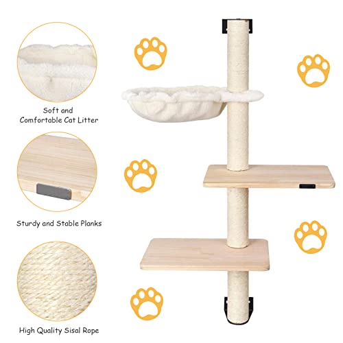 Salvaspazio: la struttura per arrampicata per gatti può essere facilmente montata alla parete, l'altezza di montaggio è possibile scegliere da soli, il supporto da parete può risparmiare spazio e allo stesso tempo garantisce stabilità e una posizione stabile.