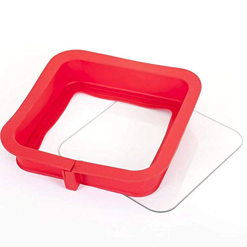 Tiramisu Springform "Square Easy Cake" in 100% Silicone Platinico con Fondo in Vetro, Torta Forma, Stampo per torta con scatola regalo, 23 x 23 cm (Tiramisu)
