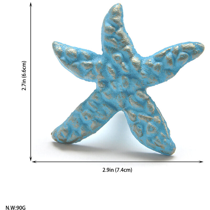 Tiro in ghisa stile oceano vintage per camera dei bambini mediterranea Tirante stella marina Tiretto per guardaroba nordico a foro singolo (4 pezzi blu)