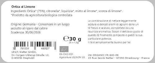 Tisana All Ortica Bio Al Limone - Sacchetti Tisana Di Ortica Al Limone Originali | Bustine Di Infuso Di Ortica Secca Al Limone Qualità Organica Superiore - Tisana Alle Ortiche Organica ‘Urtica Dioica'